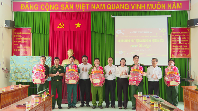 Nhằm chia sẻ với hậu phương quân đội, đoàn đã đến thăm, chúc Tết và trao quà cho lực lượng vũ trang trên địa bàn. Đặc biệt, đoàn đã trao kinh phí hỗ trợ bếp ăn của Đồn Biên phòng Thạnh An. Được biết, đây là nơi các chiến sĩ biên phòng trực tiếp chăm lo bữa trưa cho các em học sinh, giúp các em có những bữa cơm no ấm để yên tâm học chữ.