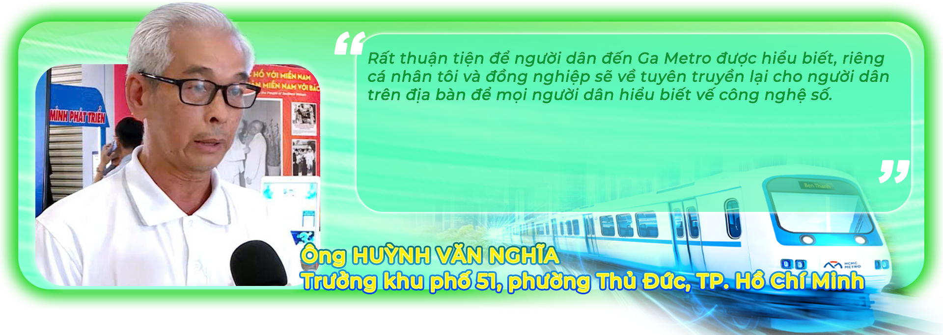 1. Trung tâm Chuyển đổi số TP. Hồ Chí Minh trực tiếp hướng dẫn người dân sử dụng ứng dụng Công dân số TP. Hồ Chí Minh để thực hiện các thủ tục hành chính ngay tại ga.