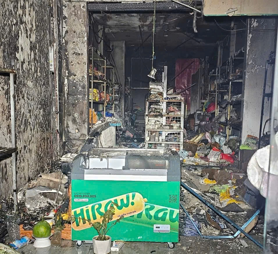 Bên trong tầng trệt cửa hàng sau hoả hoạn