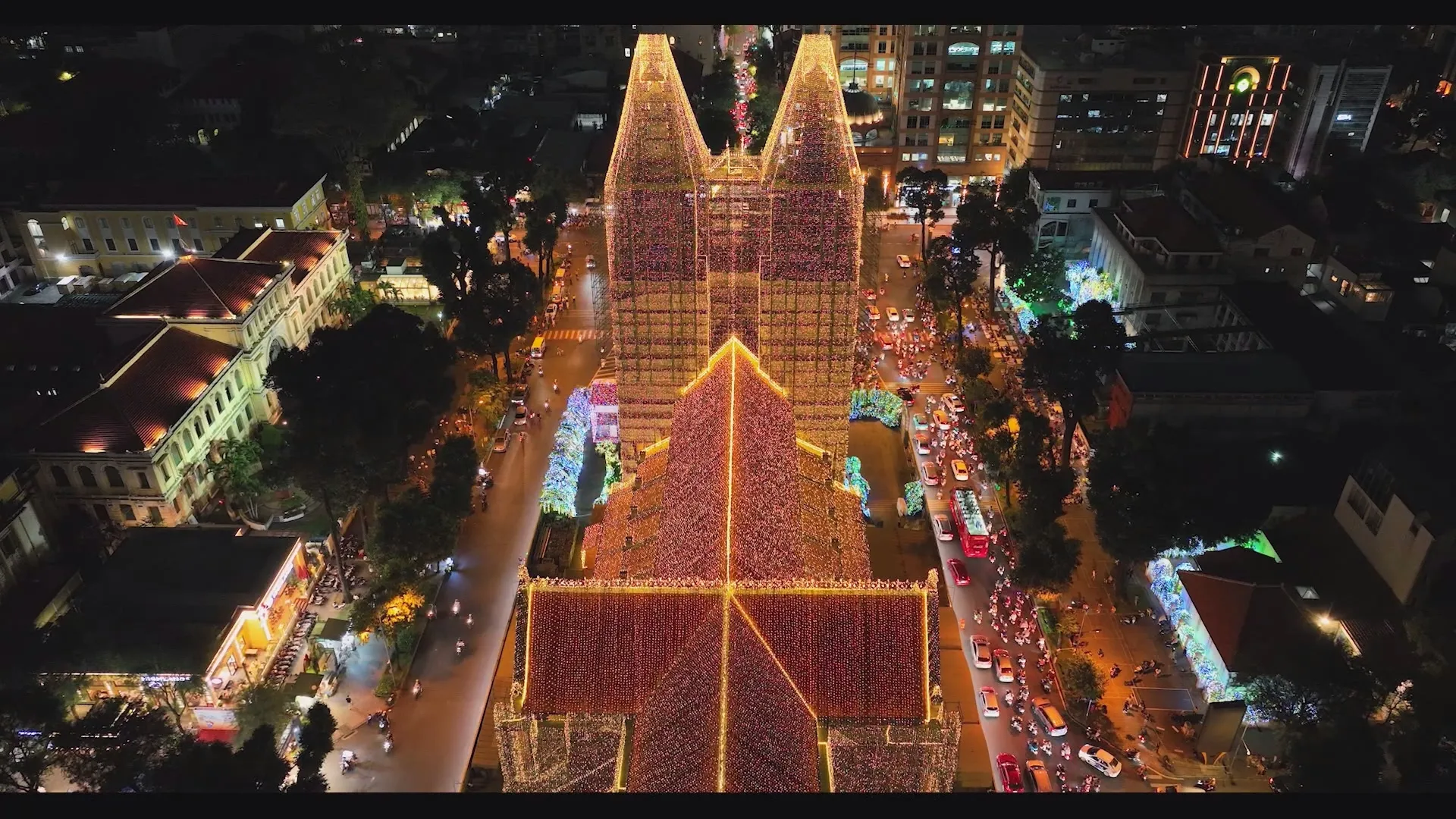 Nhà thờ Đức Bà Sài Gòn nổi bật với 500.000 mét dây đèn LED, lung linh như cung điện, thu hút hàng trăm du khách mỗi ngày. Hệ thống đèn được thắp sáng từ 17 giờ 30 phút đến 24 giờ và sáng sớm từ 4 giờ 30 phút đến 6 giờ, tạo nên khung cảnh đầy ấn tượng.