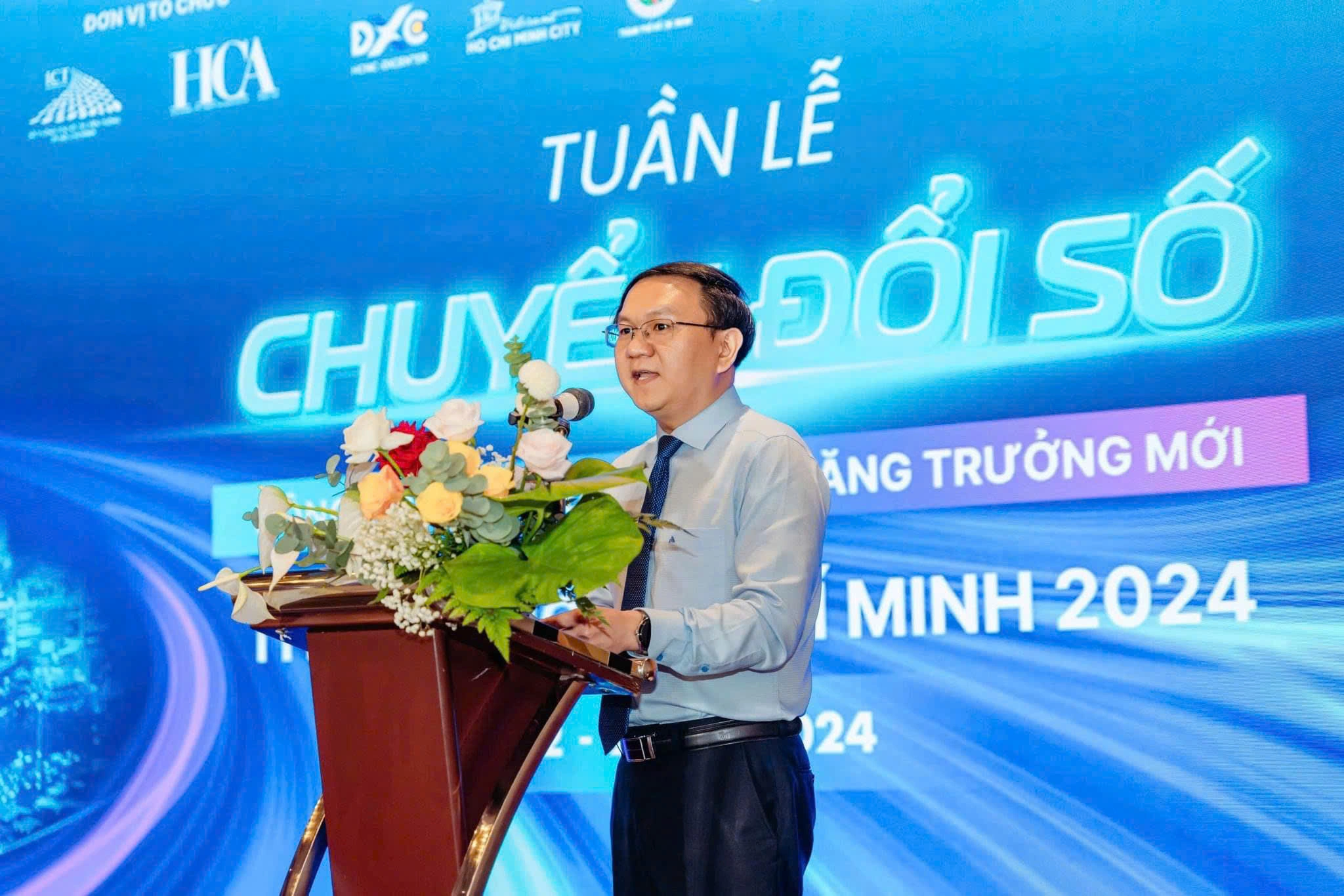 Giám đốc Sở Thông tin và Truyền thông TP.HCM Lâm Đình Thắng - Trưởng BTC Tuần lễ Chuyển đổi số TP.HCM 2024 phát biểu khai mạc