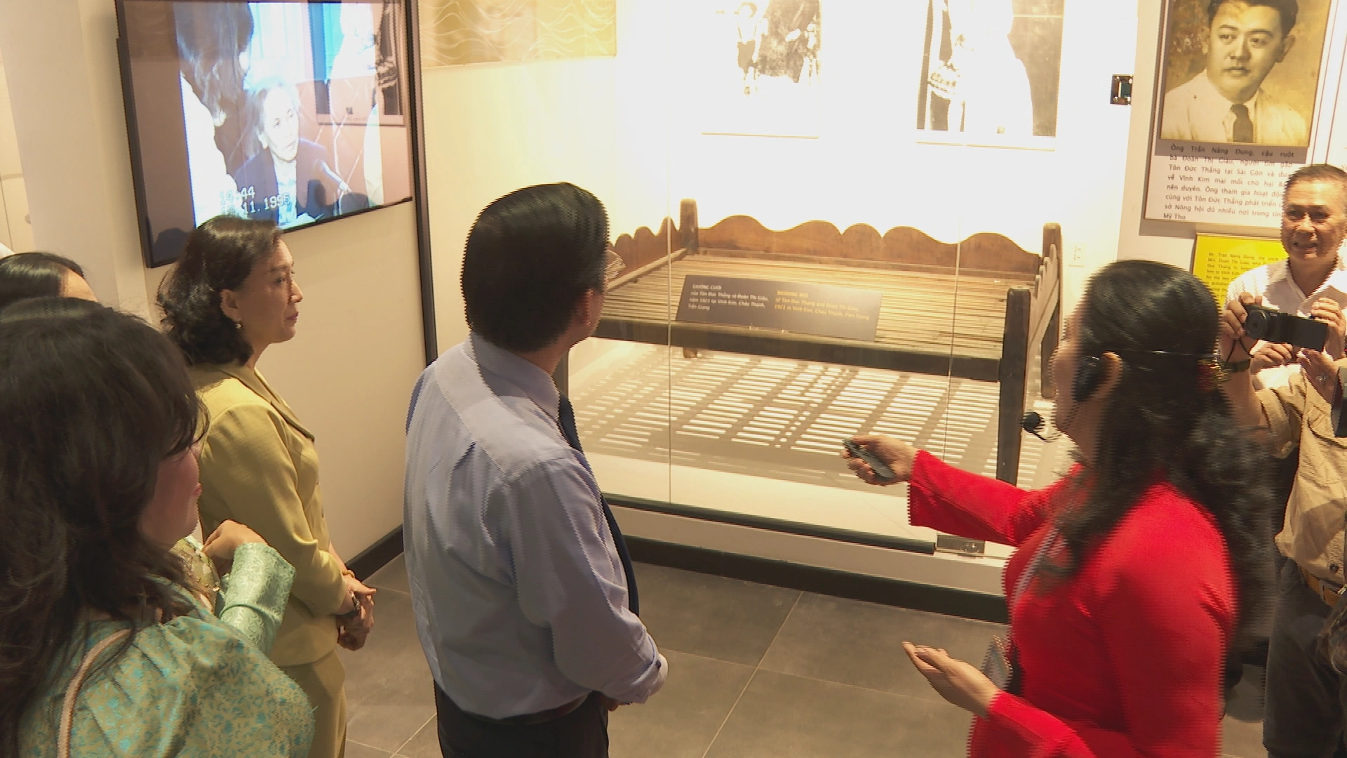 Các đại biểu tham quan phòng trưng bày tại Bảo tàng Tôn Đức Thắng