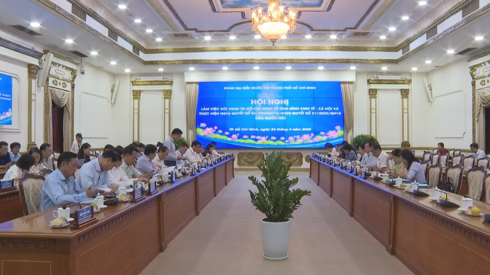 Đoàn Đại biểu Quốc hội TP.HCM đã có buổi làm việc với UBND Thành phố về kết quả thực hiện Nghị quyết số 98 của Quốc hội về thí điểm một số cơ chế, chính sách đặc thù phát triển TP.HCM và Nghị quyết số 57 của Quốc hội về chủ trương đầu tư Dự án đầu tư xây dựng đường Vành đai 3 TP.HCM.