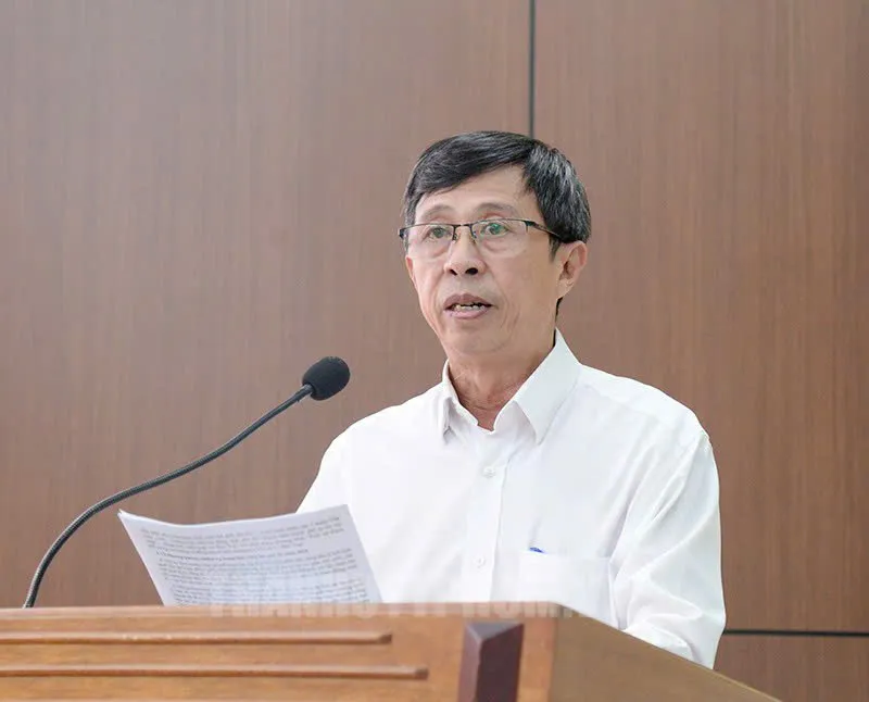 Chánh Văn phòng Ban Dân vận Thành ủy TP.HCM Lã Trung Tiến báo cáo tại hội nghị