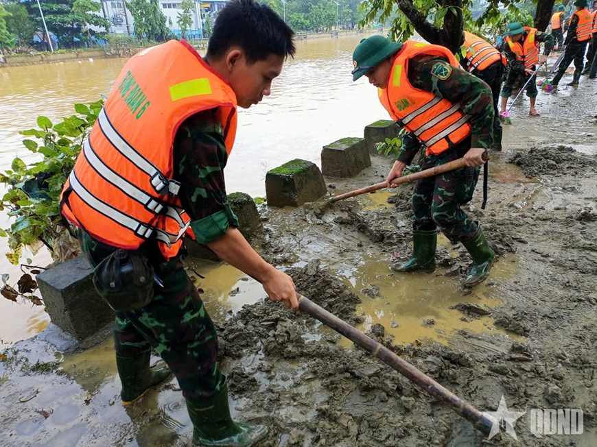Trung tá Tạ Văn Tú, Chính ủy Trung đoàn 6 cho biết: “Mấy ngày nay, cán bộ, chiến sĩ làm việc với tinh thần khẩn trương nhất, giúp dân dọn dẹp vệ sinh môi trường và khắc phục hậu quả do lũ lớn gây ra. Tuần trước, vừa hoàn thành nhiệm vụ trở về trong niềm vui xúc động của bà con thì tuần này nước lũ dâng cao trở lại. Bao nhiêu công sức của bộ đội bỗng chốc trôi theo dòng nước lũ, nhưng chúng tôi động viên anh em không được chùn bước, phải cố gắng hết sức để học sinh sớm được đến trường và bà con ổn định cuộc sống”.