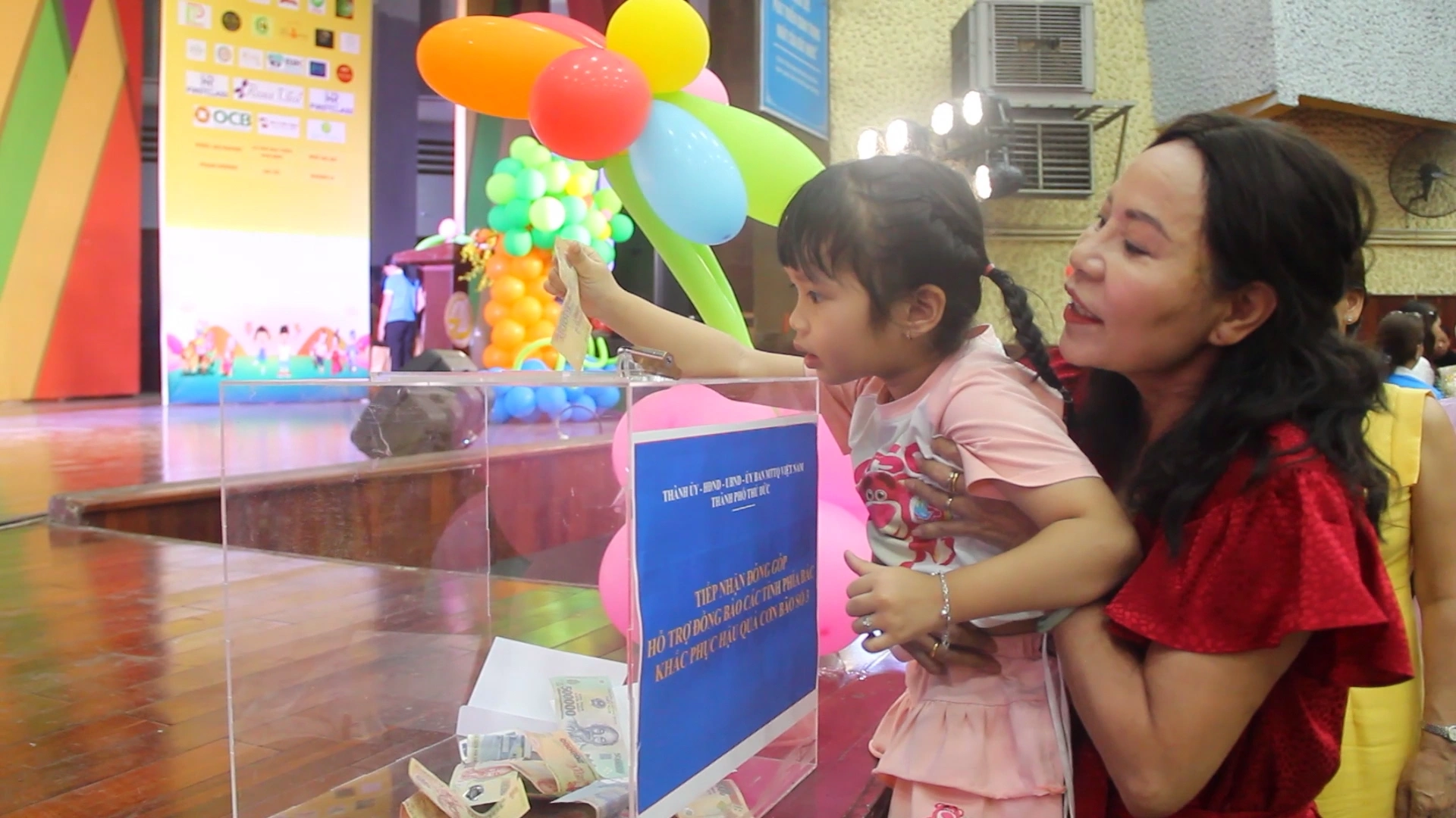 Các em thiếu nhi đóng góp cho đồng bào miền Bắc đang chịu ảnh hưởng nặng nề do bão lũ