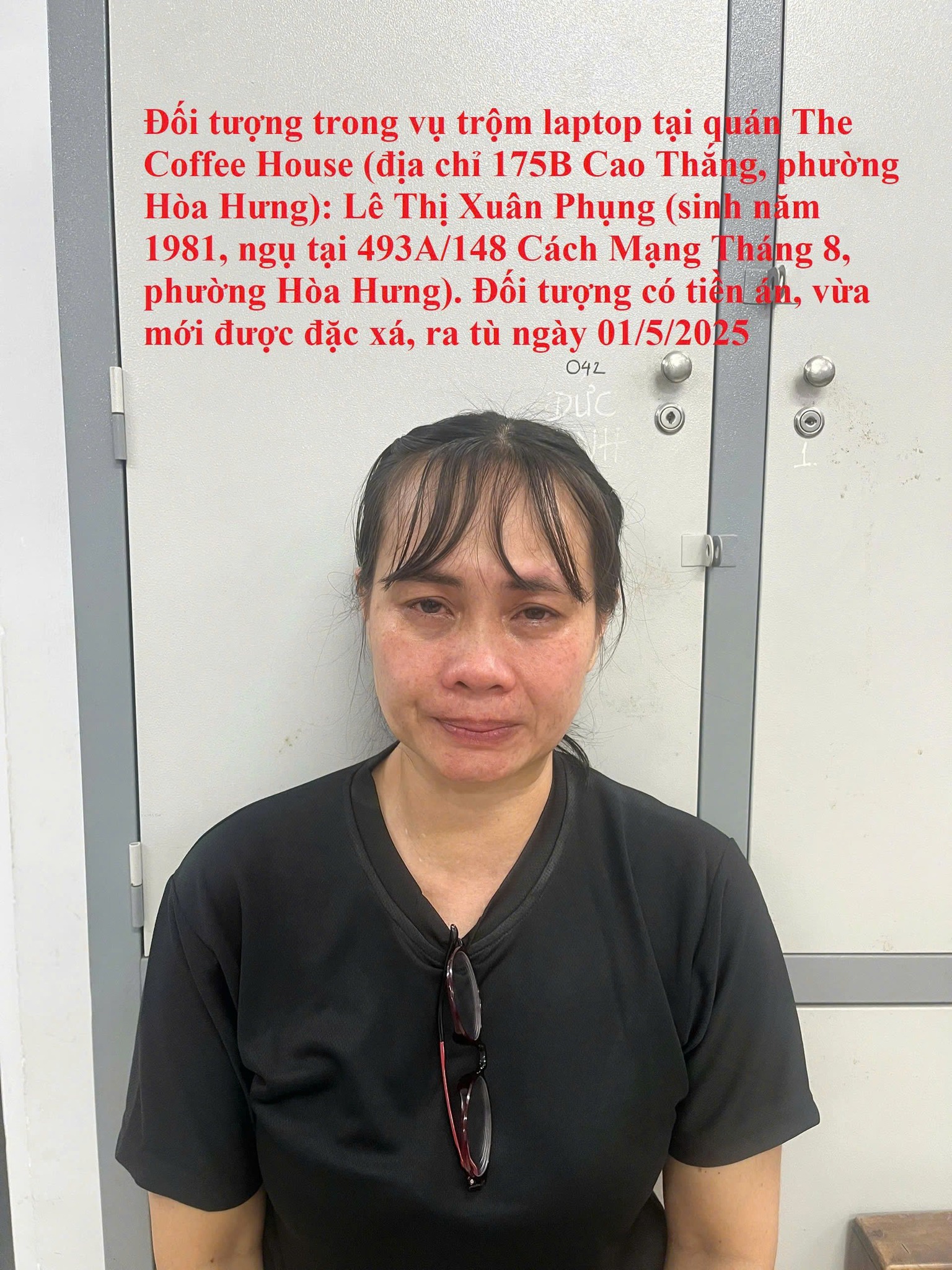 Ngày 25/12, thông tin từ Công an phường Hòa Hưng, TP. Hồ Chí Minh, đơn vị vừa bắt giữ Lê Thị Xuân Phụng (SN 1981, ngụ phường Hòa Hưng) để tiếp tục điều tra, làm rõ về việc người này trộm cắp tài sản trên địa bàn.
