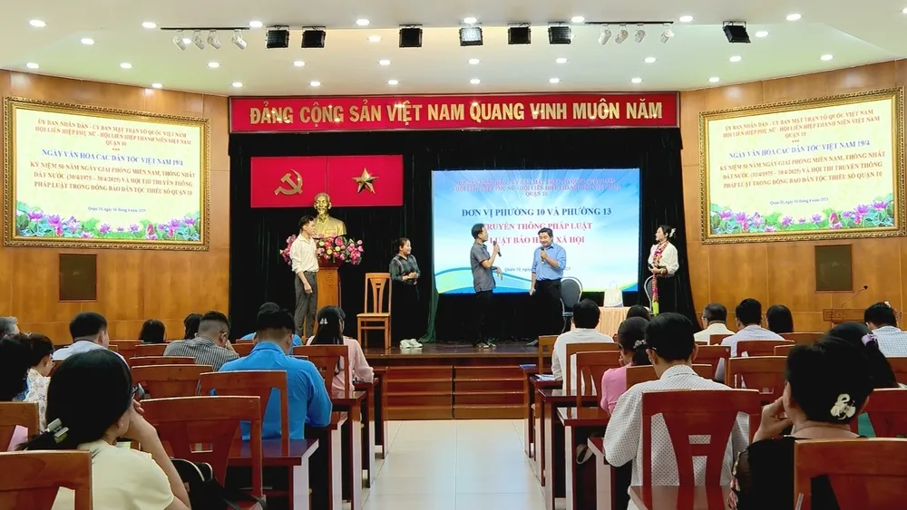 Trong không khí hân hoan kỷ niệm Ngày Văn hóa các dân tộc Việt Nam (19/4), UBND Quận 10 đã tổ chức thành công ngày hội "Sắc màu văn hóa các Dân tộc Việt Nam" và Hội thi truyền thông pháp luật trong đồng bào dân tộc thiểu số. Sự kiện thu hút đông đảo người dân tham gia, đặc biệt là đồng bào các dân tộc thiểu số trên địa bàn quận.