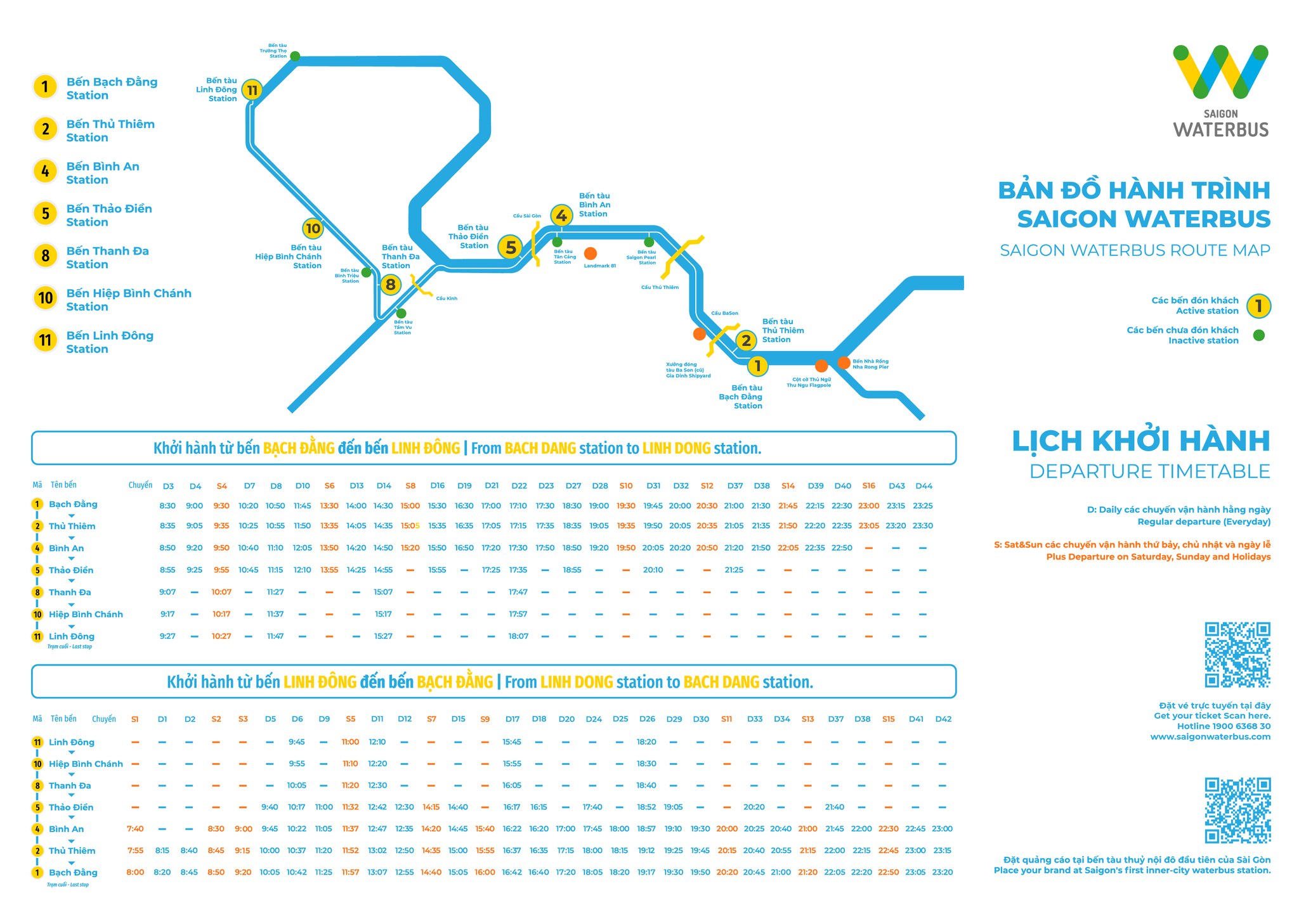 Bản đồ hành trình và lịch khởi hành của tuyến buýt sông Sài Gòn – Saigon Waterbus