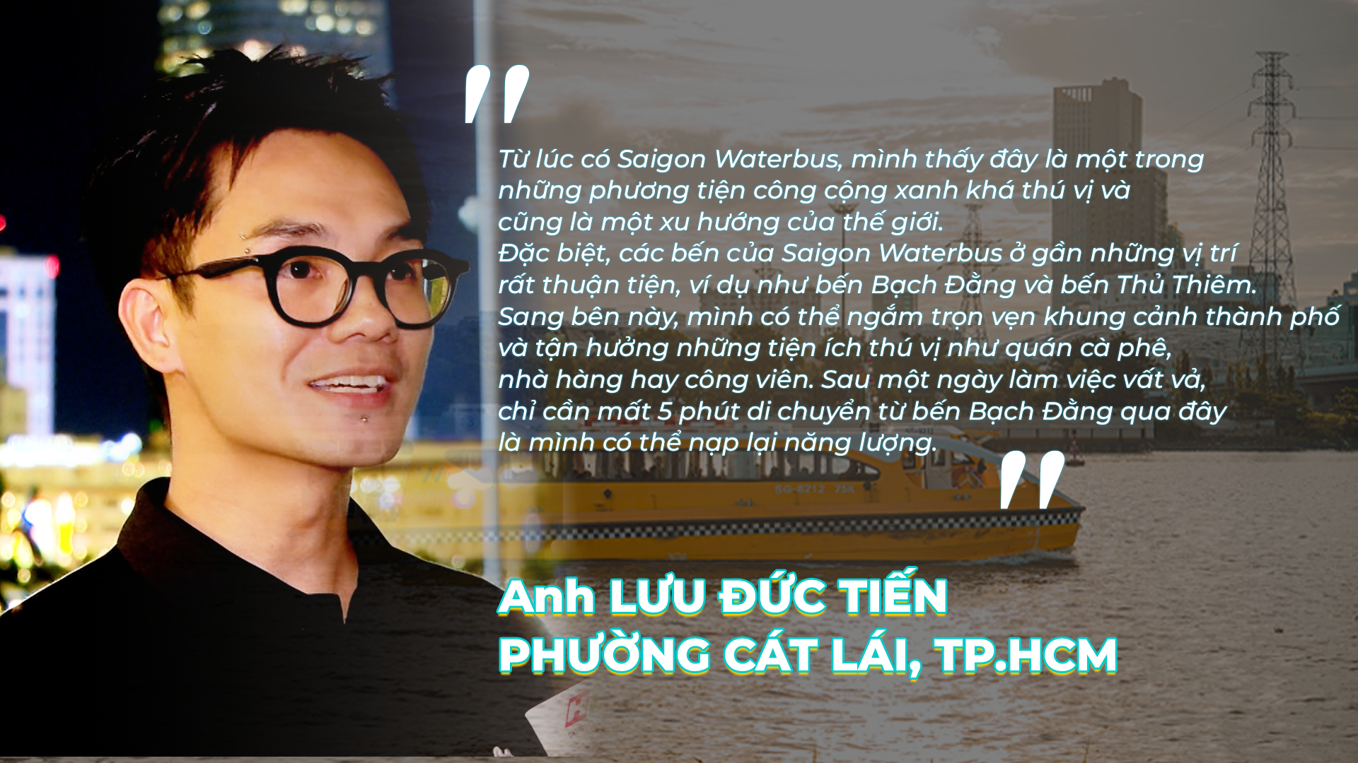 Nhờ sự kết hợp hài hòa giữa phương tiện di chuyển công cộng và sản phẩm du lịch, Saigon Waterbus đã góp phần tạo thêm sức hút mới cho TP.HCM, mang lại cho du khách cơ hội khám phá một TP.HCM vừa náo nhiệt, vừa thơ mộng. Anh Peach Stephen Phi - Du khách Anh cho biết anh đặc biệt yêu thích trải nghiệm du lịch vòng sông Sài Gòn về đêm vì tàu không chỉ mới mà còn hiện đại, chi phí hợp lý.