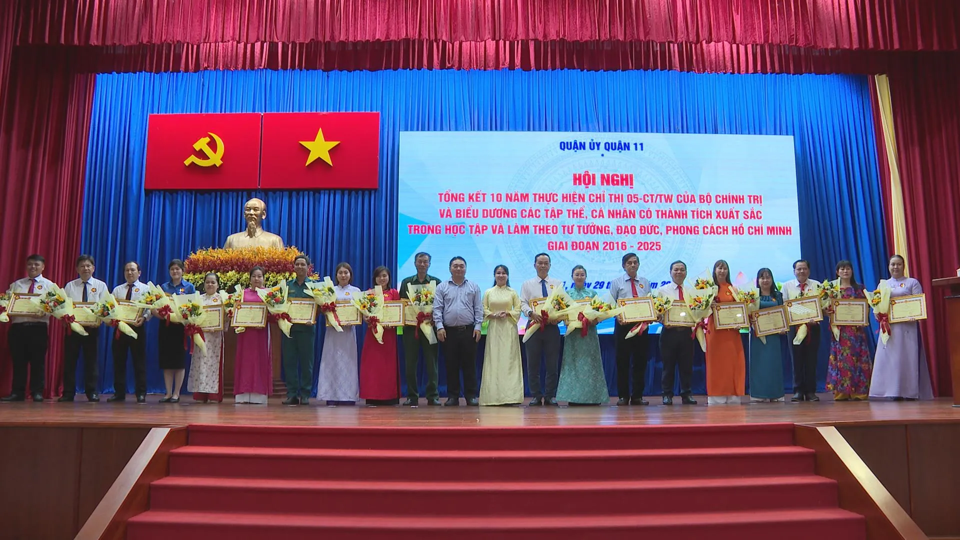Dịp này, Quận 11 đã tuyên dương 38 tập thể và 66 cá nhân có thành tích xuất sắc trong học tập và làm theo tư tưởng, đạo đức, phong cách Hồ Chí Minh giai đoạn 2016-2025.