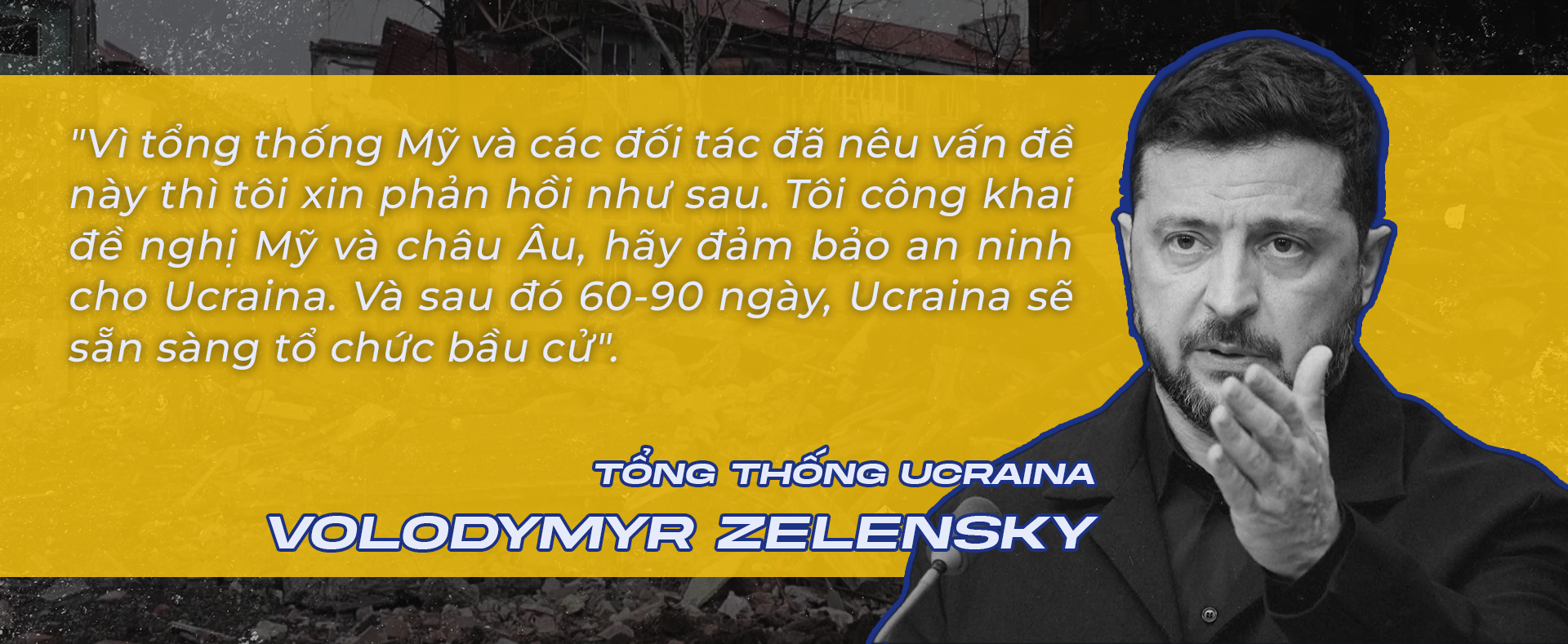 Tổng thống Zelensky đã bác bỏ cáo buộc cho rằng ông lợi dụng cuộc chiến làm cái cớ để bám lấy quyền lực. Ông tuyên bố sẵn sàng tổ chức bầu cử nếu Mỹ và các đồng minh phương Tây đảm bảo an ninh cho Ukraine.