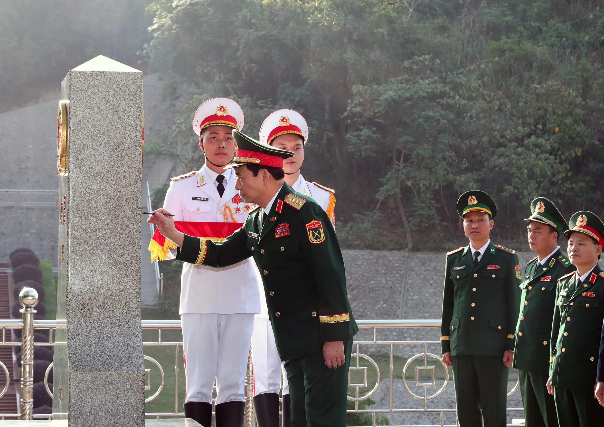 Bộ trưởng Phan Văn Giang tô son cột mốc chủ quyền quốc gia bên phía Việt Nam