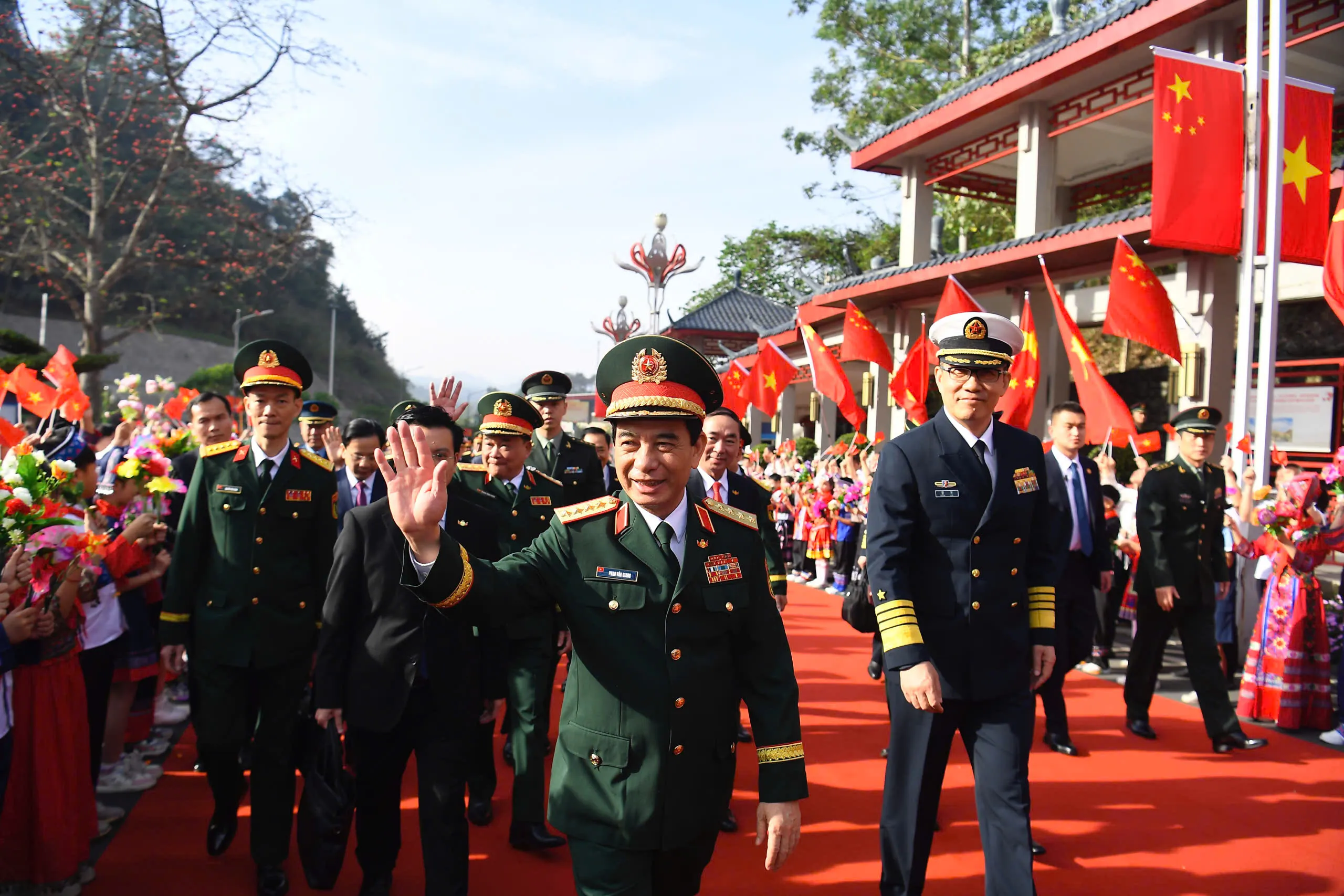 Nhân dân Trung Quốc khu vực biên giới chào đón Bộ trưởng Phan Văn Giang cùng đoàn đại biểu Bộ Quốc phòng Việt Nam