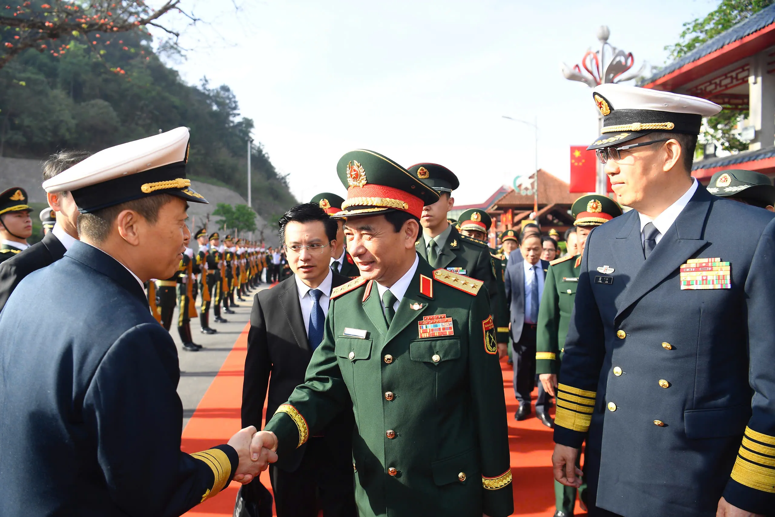 Bộ trưởng Phan Văn Giang và Bộ trưởng Đổng Quân cùng đoàn đại biểu Bộ Quốc phòng hai nước Việt Nam - Trung Quốc