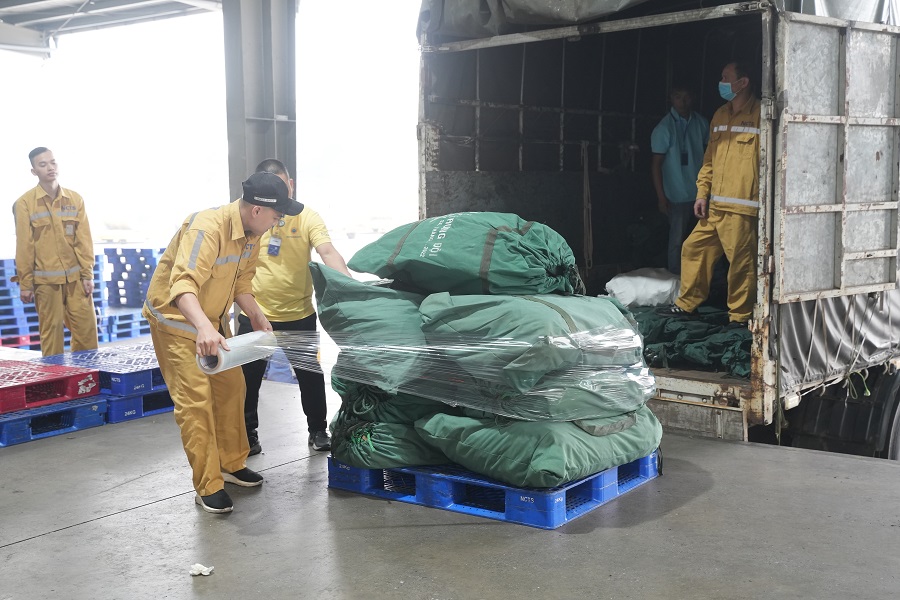 Các lô hàng cứu trợ được đóng gói, kiểm tra cẩn thận trước khi tiến hành các bước tiếp theo của quy trình vận chuyển.