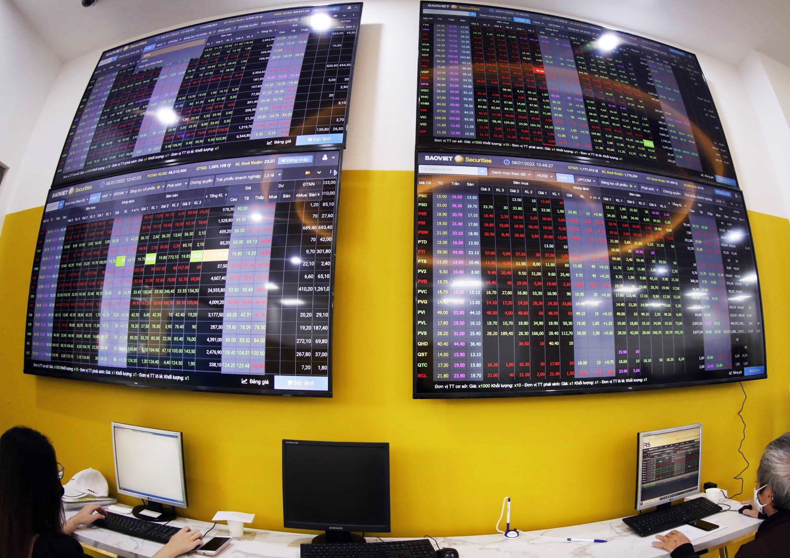 Khách hàng giao dịch tại Chứng khoán Bảo Việt, số 8 Lê Thái Tổ, Hà Nội. Ảnh tư liệu: Trần Việt/TTXVN