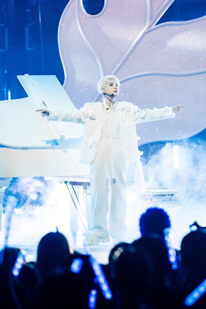 Sân khấu Illusion được xây dựng đầy biểu tượng: chiếc dương cầm giữa luồng sáng trắng và chiếc lá khuyết treo lơ lửng - “chiếc lá của sự nguyên bản” mà Tường chia sẻ phải mất hơn 33 năm để tìm thấy. Khoảng khuyết của chiếc lá cho ánh sáng xuyên qua, như hành trình mỗi người chỉ nhìn thấy mình rõ nhất khi dám bước qua những tổn thương.