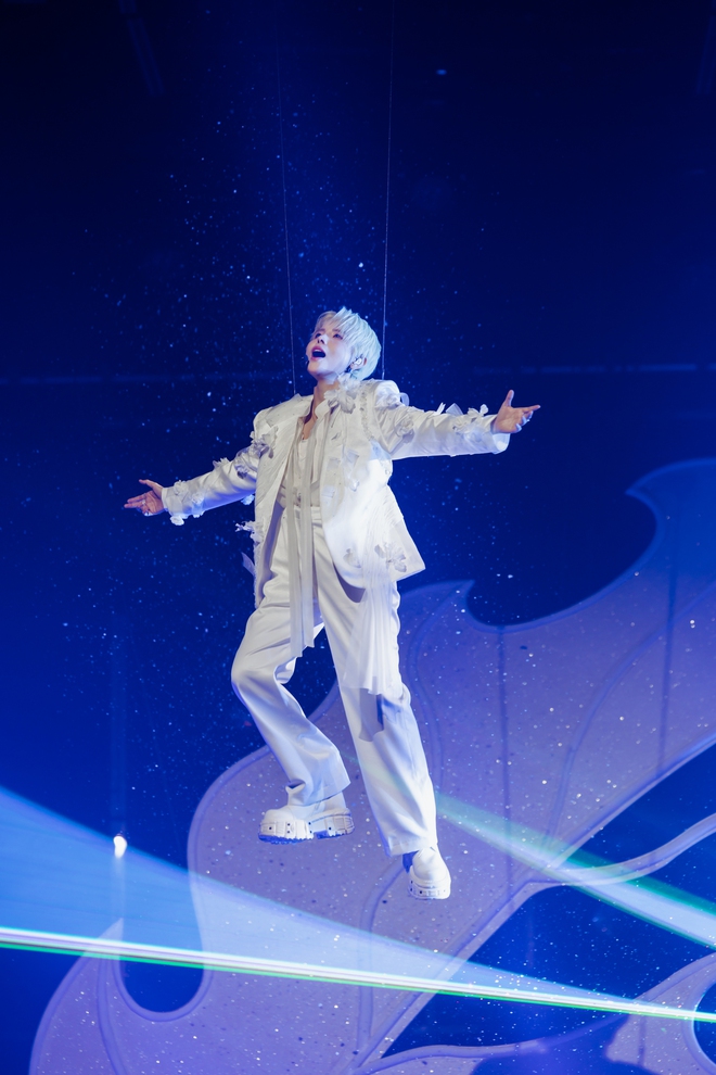 Sân khấu được dàn dựng đầy ngụ ý, phần “khuyết” của chiếc lá để ánh sáng xuyên qua, tạo thành một con đường sáng mà Vũ Cát Tường từng bước theo, như hành trình tìm lại bản thể của chính mình