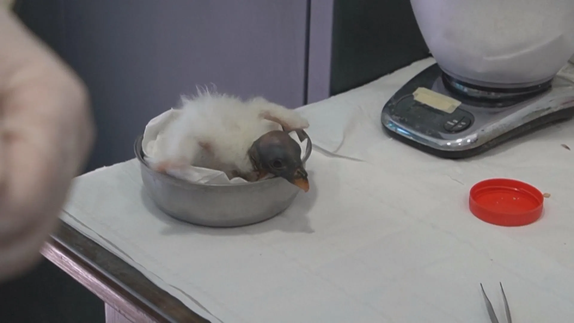 Chim non Kền Kền Giáo hoàng lần đầu được cân sau khi chào đời tại Vườn thú Roma